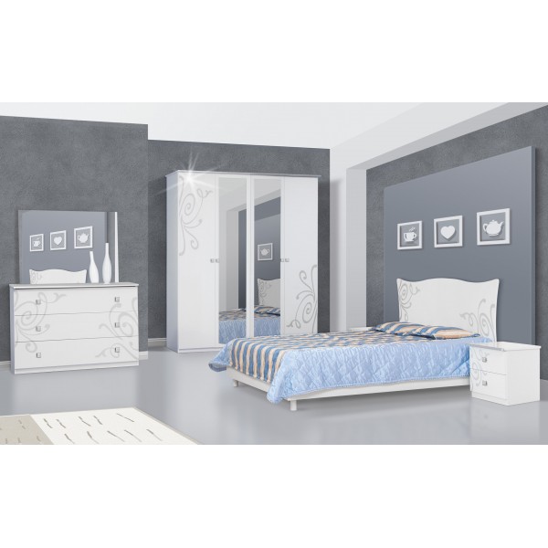 Спальня "Филиция Нова" – это изысканный и функциональный комплект мебели, который создан для стильного и комфортного отдыха в вашей спальне. Этот комплект включает в себя кровать с двумя спальными местами размером 1.6 метра, шкаф с четырьмя дверями с выдвижными ящиками, комод, тумбу и красивое зеркальце.