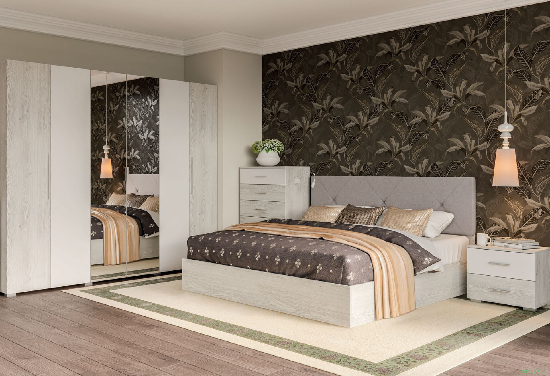 Корпус мебели изготовлен из артвуда светлого цвета, а фасады – из артвуда светлого или белого цвета. Удобные выдвижные ящики на направляющих полного выдвижения позволяют хранить вещи рядом и организовывать пространство спальни. Мебель "Спальня Ромбо" идеально подойдёт для современного и уютного спального помещения.
