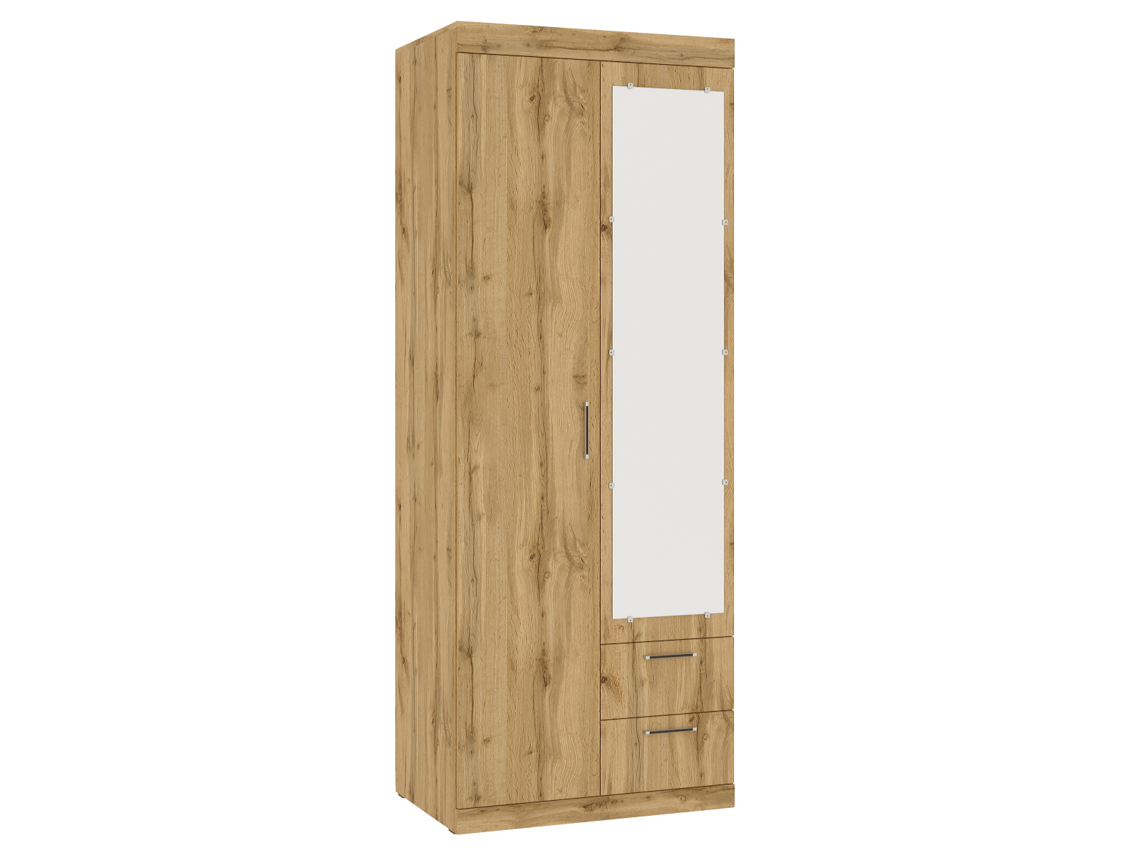 Фасад шкафа имеет кромку из АБС толщиной 2 мм, что придает ему дополнительную прочность и устойчивость. Этот шкаф оснащен роликовыми направляющими, которые позволяют легко открывать и закрывать двери шкафа, обеспечивая плавное движение. Двери шкафа удобно защищены от царапин и пыли благодаря шлифованному ДВП.