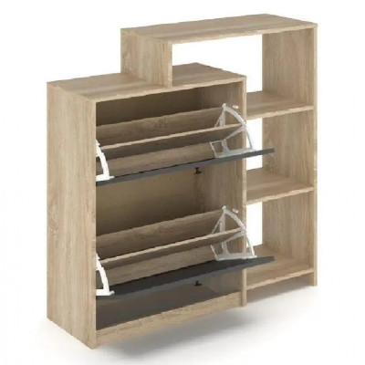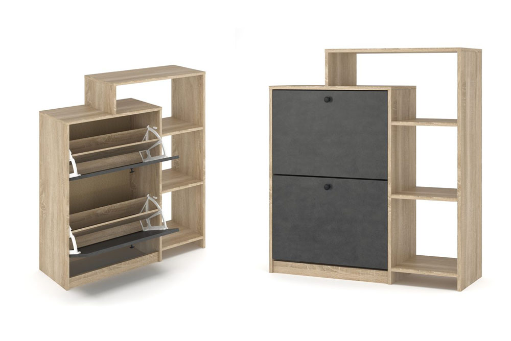 Благодаря своему уникальному дизайну, она предлагает максимальную вместимость для вашей обуви без ущерба для внешнего вида помещения. Пространство в тумбе разделено на несколько отделений с регулируемыми полками, позволяющими организовать хранение обуви разных размеров и типов, сохраняя их в идеальном порядке. В отличие от других тумб для обуви, Compo3 2Д предлагает особенную разновидность – она оснащена двумя ящиками, которые обеспечивают дополнительное пространство хранения для мелких аксессуаров, таких как ключи, перчатки и другие вещи, которые обычно теряются.