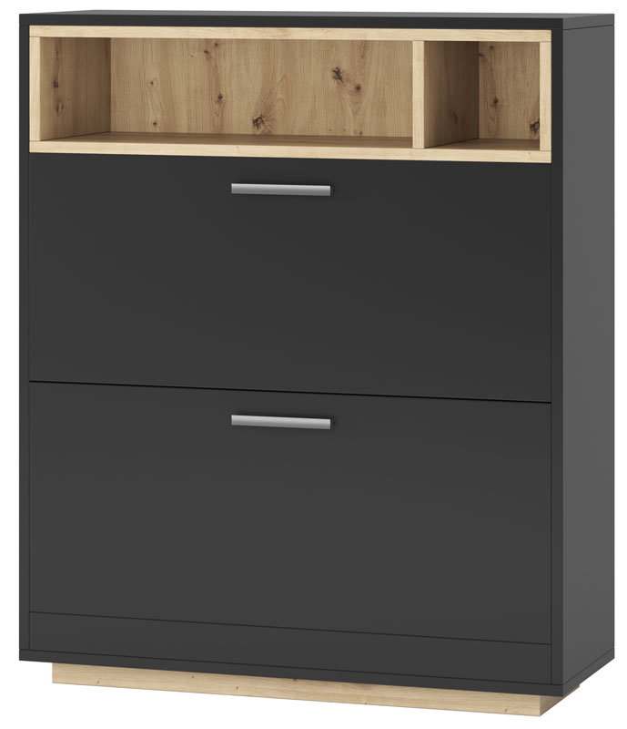 Фасады сделаны из нимфеи альбы и антрацита (ДСП), что создает стильный и современный вид мебели. Благодаря удачному сочетанию материалов и цветов, тумба для обуви Хайды отлично впишется в любой интерьер, придав ему элегантность и функциональность. Пусть ваша обувь всегда будет на своем месте с тумбой Хайды!