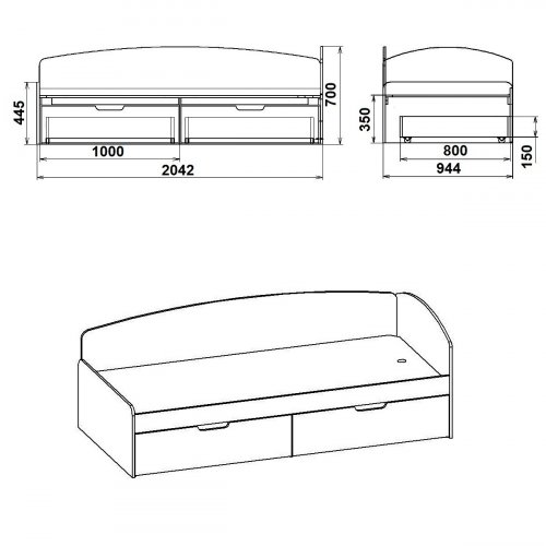 Эта замечательная кровать 90+2С - идеальный выбор для вашей спальни. С высотой 700 мм (400 мм до подставки для матраса) она предоставляет вам комфортную высоту для легкого входа и выхода, сохраняя при этом ваш спальный комфорт. Ее ширина 944 мм и глубина 2042 мм обеспечивают достаточно пространства для спокойного и комфортного сна.