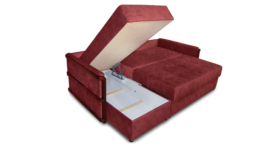 Оснащение дивана включает короб для хранения, который позволяет удобно размещать постельное белье, подушки или другие предметы, сохраняя порядок и уют в вашем доме. Декоративные элементы из натурального дерева придают дивану изысканный и стильный вид, добавляя нотку природной красоты в интерьер.