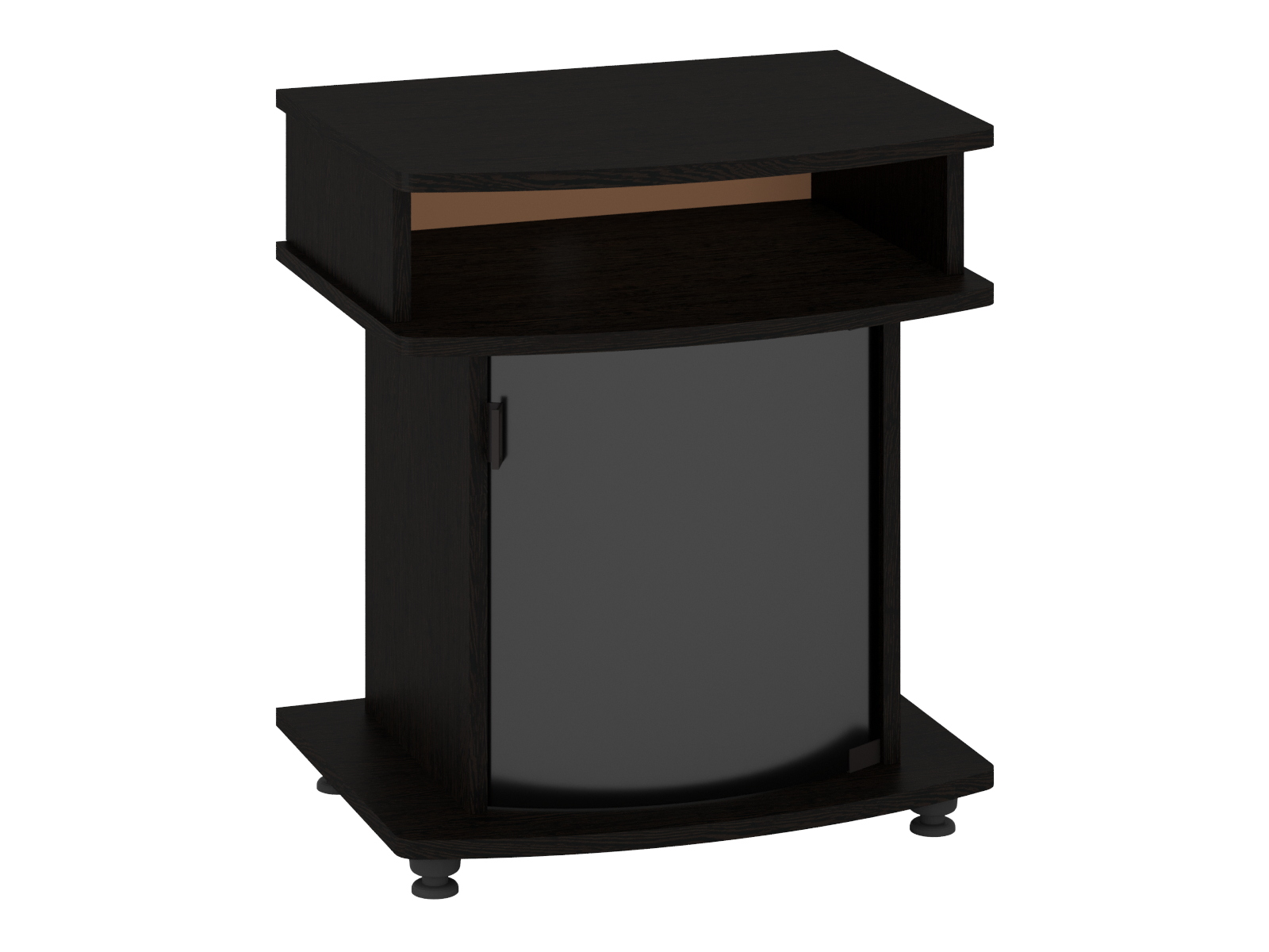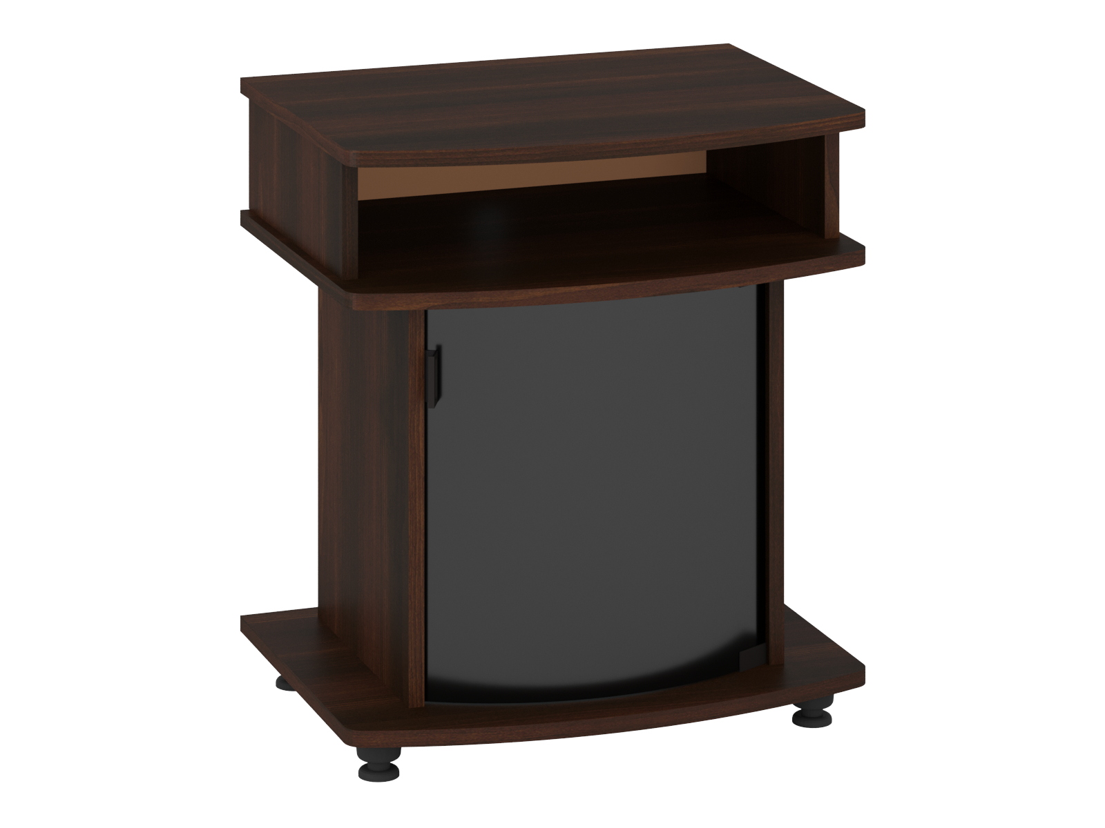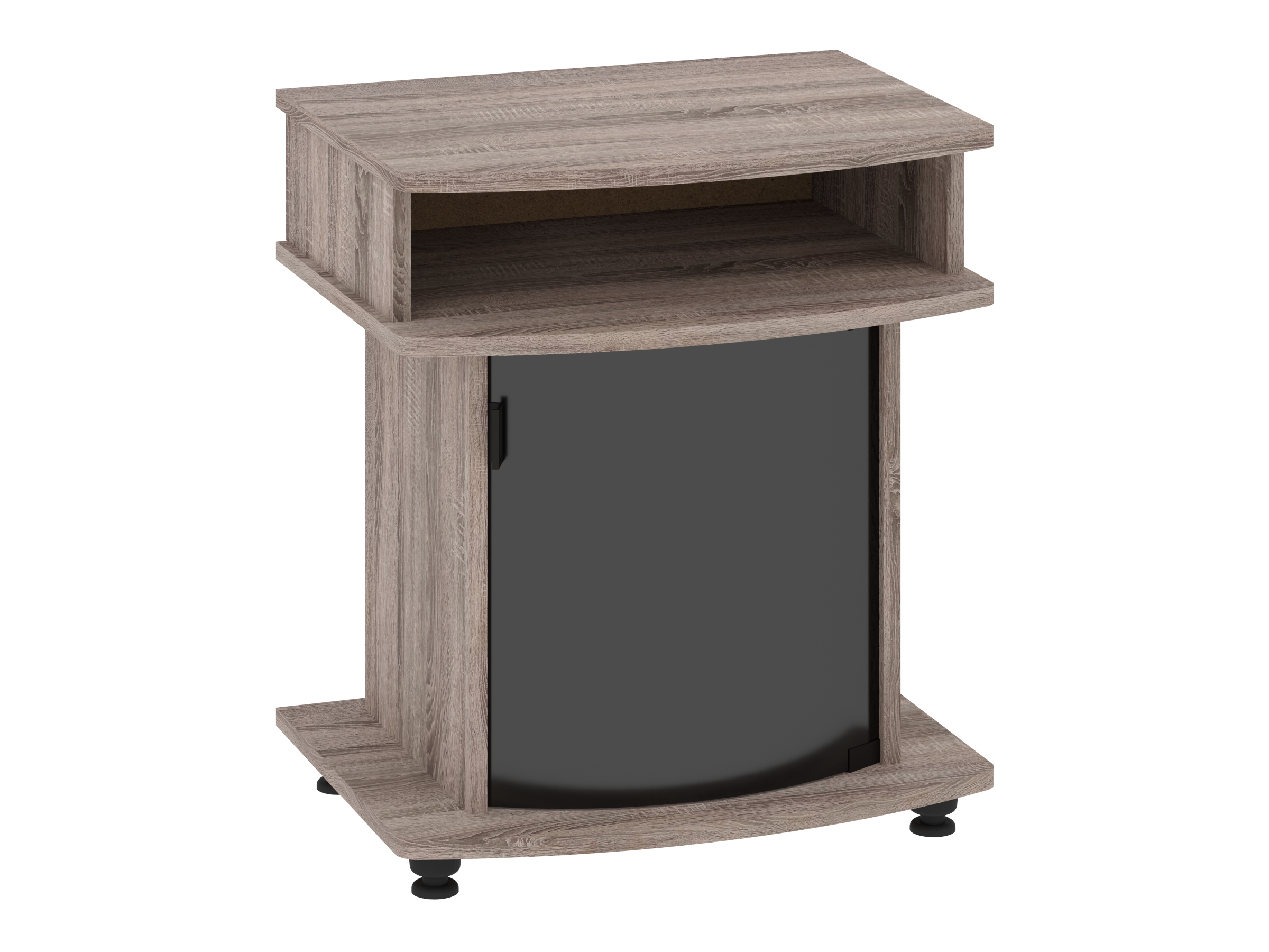 Мебель изготовлена из высококачественного ДСП толщиной 16 мм, что обеспечивает прочность и устойчивость. Эта тумба спроектирована для сохранения вашего оборудования и выглядит очень стильно благодаря тонированному стеклу на дверце.