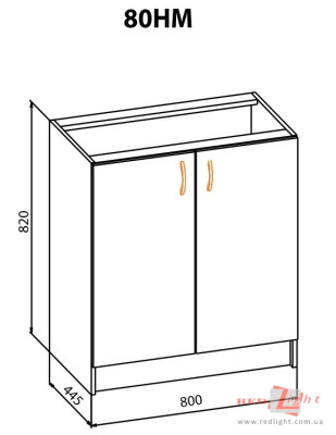 - Ширина: 800 мм – оптимальна ширина для розміщення мийки та комфортного користування.