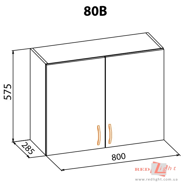 - Висота: 575 мм – стандартна висота для верхніх кухонних тумб, що забезпечує комфортне розміщення у приміщенні.