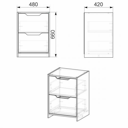 Тумба має висоту 660 мм, ширину 480 мм і глибину 420 мм, що робить її ідеальним вибором для розміщення поруч з ліжком. Ви можете легко розміщувати на ній нічні лампи, книги, будильник та інші предмети, які вам потрібні під час сну або Пробудження.