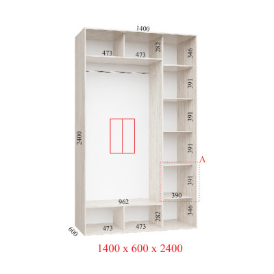 Шафа-купе 140Х60Х240 Стандарт - 2 фасади