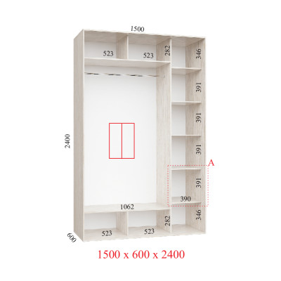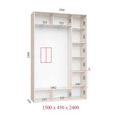 Шафа-купе 150Х60Х240 Стандарт - 2 фасади