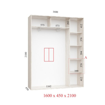 Шафа-купе 160Х45Х210 Стандарт - 2 фасади