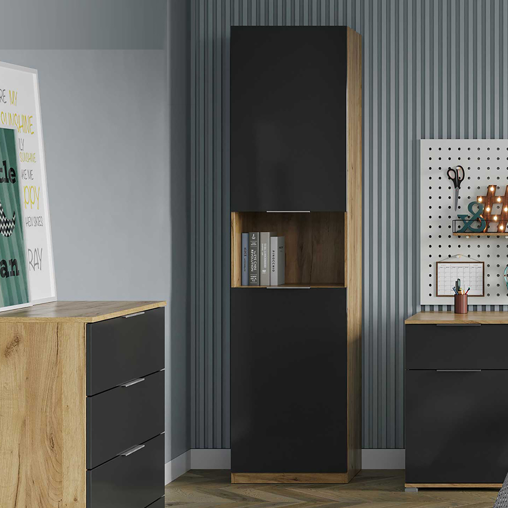 Шафа відповідає сучасному стилю-модерну. Пряма форма шафи дозволяє розмістити його в різних інтер'єрах. Вона ідеально підходить як для дитячої, так і для спальні. Шафа пенал-це прекрасне рішення для тих, хто шукає компактне і функціональне рішення для зберігання речей. Загальна висота шафи становить 2105 мм, ширина – 550 мм, Глибина – 418 мм.