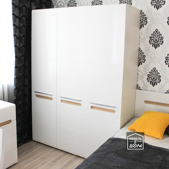 Переваги шафи Б'янко 3Д проявляються у її функціональності та естетичному вигляді. Він оснащений трьома великими висувними дверцятами, які забезпечують легкий доступ до вмісту шафи та зручне розміщення речей. Внутрішній простір розподілено на різні секції, що дозволяє організувати речі з урахуванням їхнього типу та розміру.