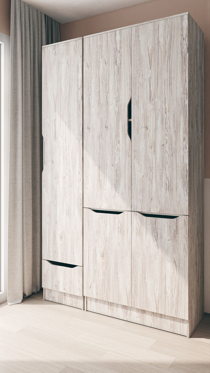 Дизайн шафи Локі вражає своєю елегантністю та сучасністю. Чисті лінії, мінімалістичні деталі та гармонійний вигляд роблять його універсальним елементом для різних стилів інтер'єру. Колірна гамма шафи може бути обрана відповідно до вашого власного смаку та уподобань, що надасть візуального акценту та підкреслить індивідуальність вашого приміщення.