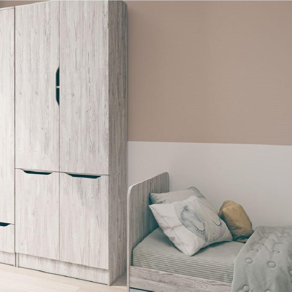 Розміри 800 х 2100 х 400 мм дозволяють шафі Локі мати достатній обсяг для організації зберігання різних видів речей. Чотири висувні ящики дозволяють ефективно розподіляти простір та зручно зберігати предмети різних розмірів та форм. Такий дизайн робить шафу ідеальним вибором для спалень, коридорів або вбиралень.