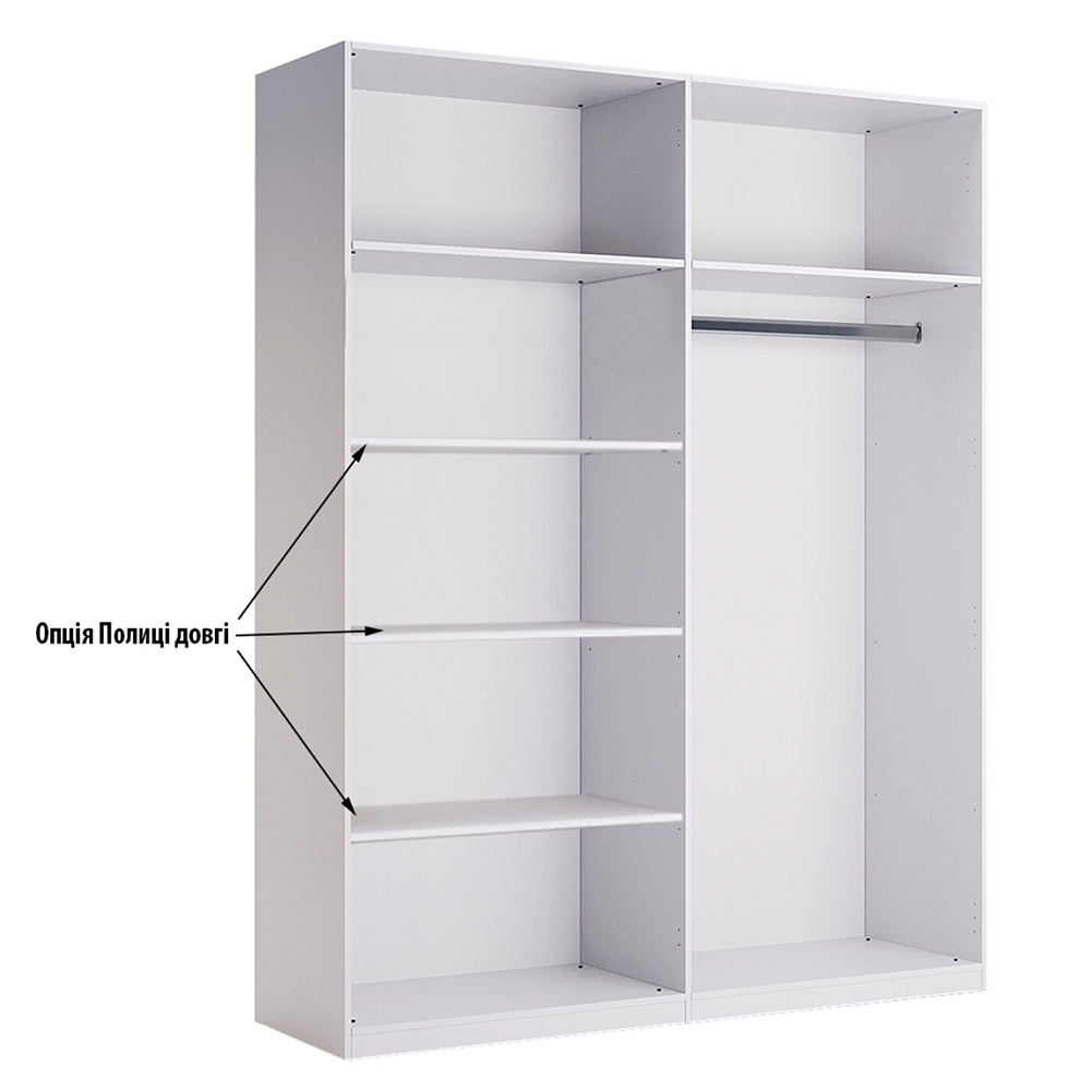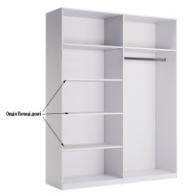 Загальна ширина шафи становить 1830 мм, що забезпечує достатньо місця для зберігання вашого одягу, взуття та інших речей. Шафа орний, що дозволяє легко монтувати і розбирати його при необхідності.