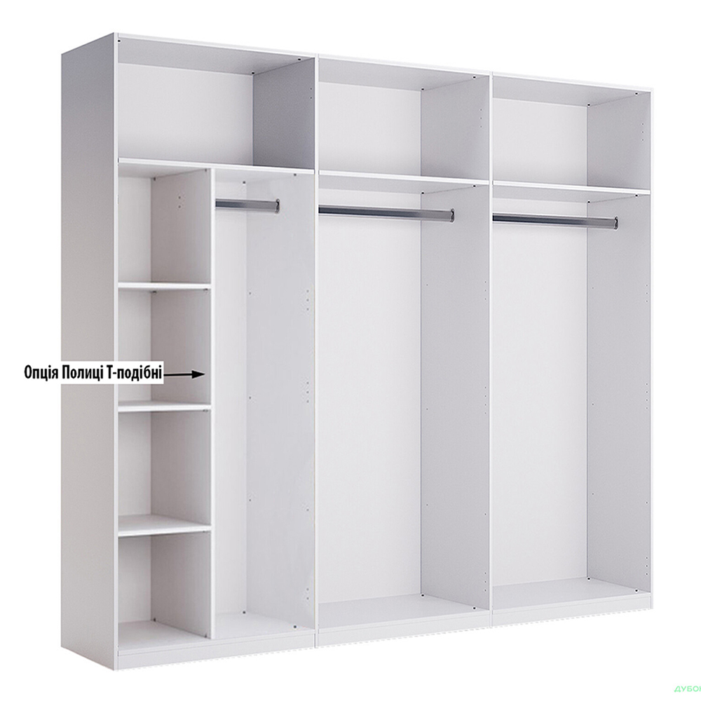 Шафа Белладжіо 6дв без дзеркал MiroMark з висотою 2250 мм і глибиною 550 мм є ідеальним доповненням до Вашого інтер'єру. Вона має шість дверей, які легко відкриваються завдяки хромованим ручкам і завісам підвищеної міцності з плавним закриттям. Металеве кріплення і протиковзкі Тримачі для полиць забезпечують надійну фіксацію і безпеку зберігання речей.
