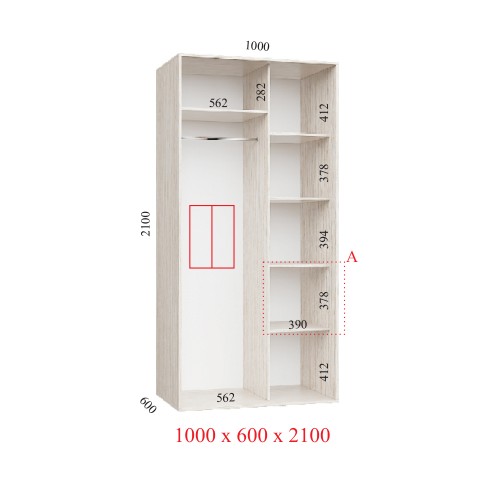 Ще одна перевага шафи-купе 100х60х210 Стандарт - 2 фасаду - це його функціональність. Його містке внутрішній простір з широкими полицями і вішалками дозволяє зручно зберігати одяг, взуття та інші речі. Ви можете легко організувати свої речі і знайти їх в потрібний момент завдяки зручним відділенням і ящиках.