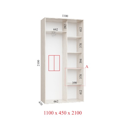 Шафа-купе 110Х45Х210 Стандарт - 2 фасади
