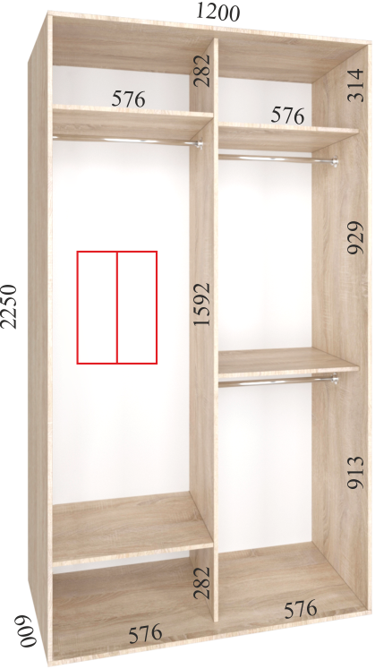Завдяки висоті 225 см і ширині 120 см, Ви отримуєте безліч полиць, ящиків і вішалок для зручного зберігання одягу, взуття та аксесуарів. Ви більше не будете втрачати час на пошук потрібної речі, так як все буде акуратно організовано у вашій шафі-купе Фенікс. Ультра шафа-купе також відрізняється своєю унікальною конструкцією двох фасадів. Ви можете вибрати з двох різних відділень, що дає вам більше гнучкості при організації вашого простору.