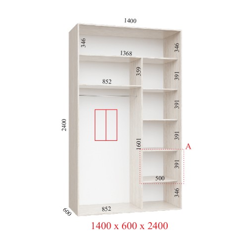 Висота 240 см і глибина 60 см забезпечують максимальне використання вертикального простору у вашій кімнаті. Завдяки цій шафі-купе Ви зможете ефективно організувати ваш одяг і аксесуари, звільнивши корисний простір на підлозі. Фенікс шафа-купе 140x60x240 Ультра оснащений двома фасадами, що створюють ефект двох незалежних відділень.