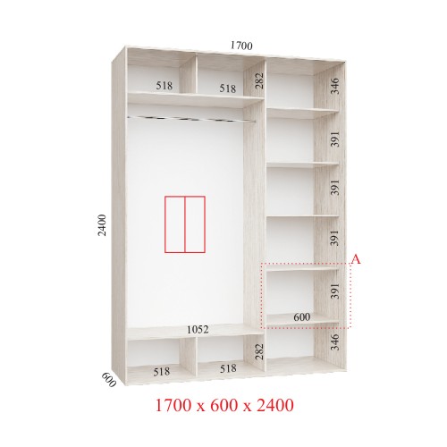 Велика висота та два фасади дозволяють максимально використовувати вертикальний простір, звільняючи підлогу та стіни. Але це ще не все. Шафа-купе 170х60х240 Стандарт володіє також чудовою функціональністю. Завдяки своїй конструкції, він легко розділить вашу одяг на різні секції, що дозволить вам легко знайти потрібну річ без необхідності шукати її серед інших.