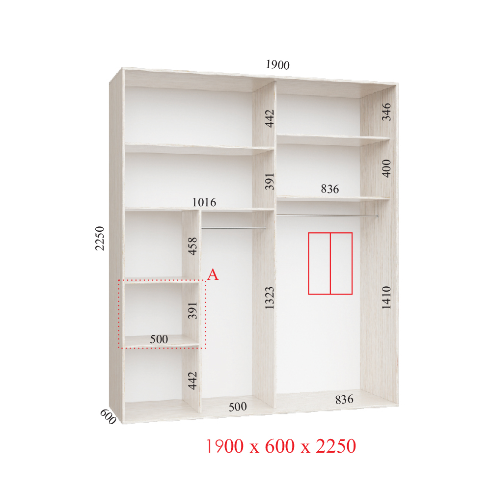 З розмірами 190х60х225 сантиметрів, він ідеально впишеться навіть в невеликі приміщення, максимально використавши простір. Завдяки цьому шафа-купе можна встановити практично в будь-якій кімнаті вашого будинку або офісу. Особливу увагу було приділено максимізації зручності і функціональності цієї шафи-купе. Він оснащений двома фасадами, які забезпечують зручний і легкий доступ до вашого одягу, взуття та інших речей.