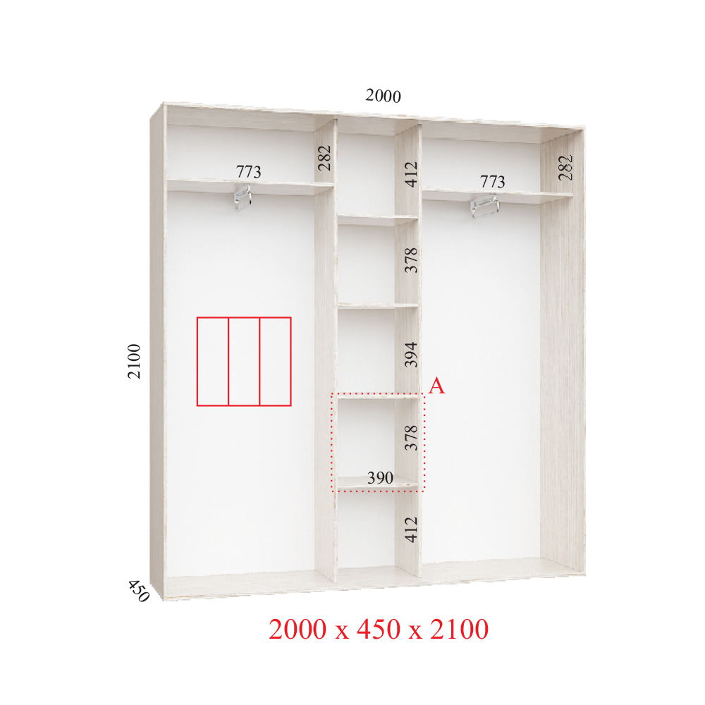Ви зможете організувати всі свої речі так, щоб вони були завжди під рукою і в той же час не займали багато місця. Крім того, шафа-купе 200х45х210 Стандарт оснащений двома фасадами, що дозволяє з легкістю організувати доступ до ваших речей. Завдяки цьому, ви зможете зручно звертатися до вмісту шафи, не перекриваючи доступ до інших речей.