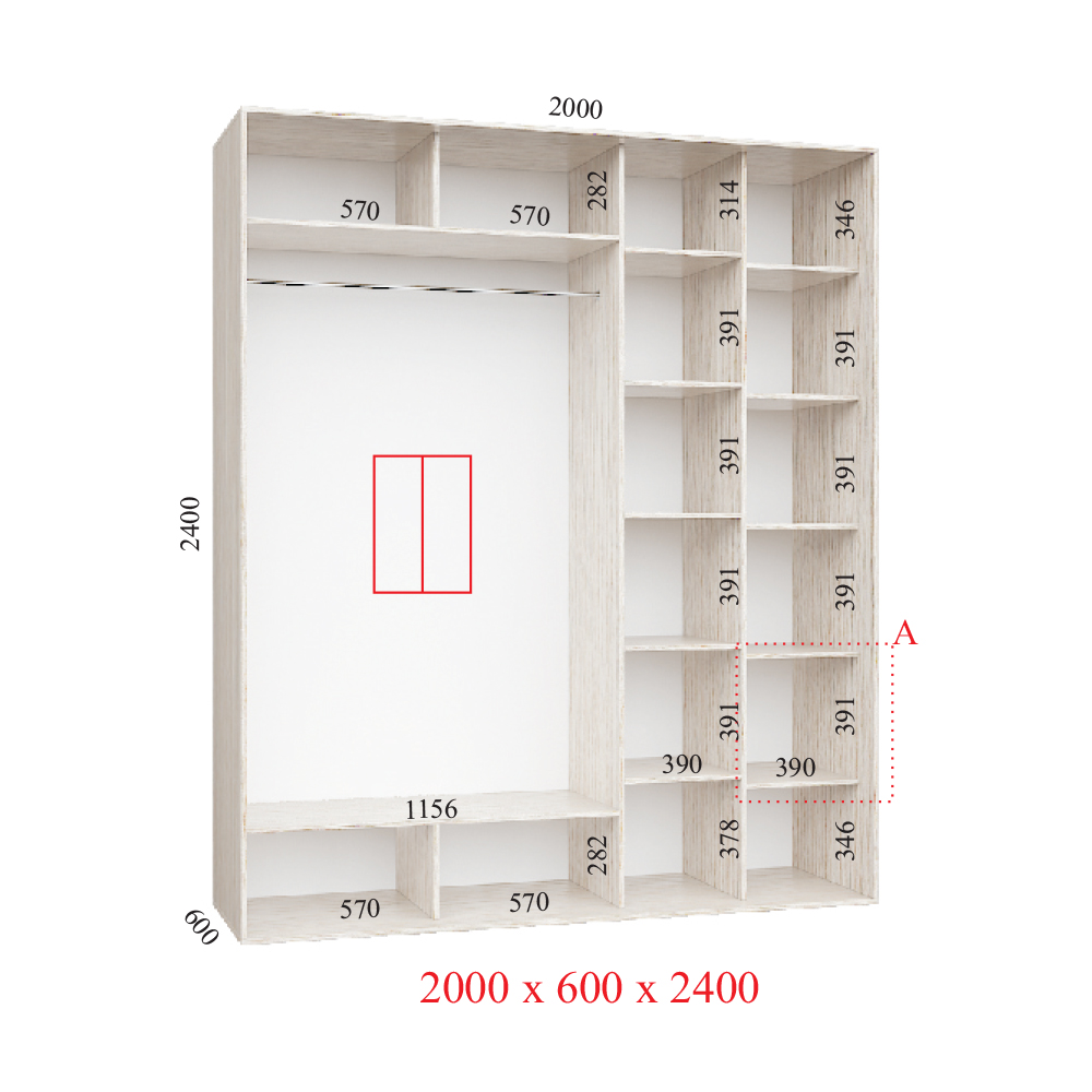 Завдяки своїм компактним розмірам 200х60х240, він відмінно впишеться навіть в невеликі приміщення, не займаючи багато місця. Ви зможете максимально ефективно використовувати простір вашої кімнати і організувати зберігання вашого одягу, взуття та інших речей. Якість і надійність – це ще одна перевага шафи-купе 200х60х240 Стандарт.
