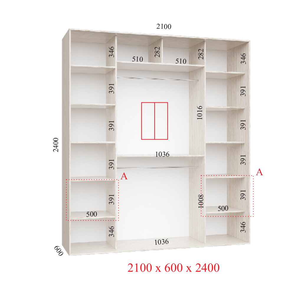 Шафа може бути встановлений в будь-якому приміщенні завдяки його компактним розмірам 210х60х240. Висота дозволяє використовувати весь обсяг кімнати до стелі, максимізуючи використання простору. Дизайн шафи-купе також заслуговує на окрему увагу. Два фасади, які легко ковзають по рейковій системі, додають оригінальності, а також забезпечують надійний захист ваших речей від пилу і бруду.