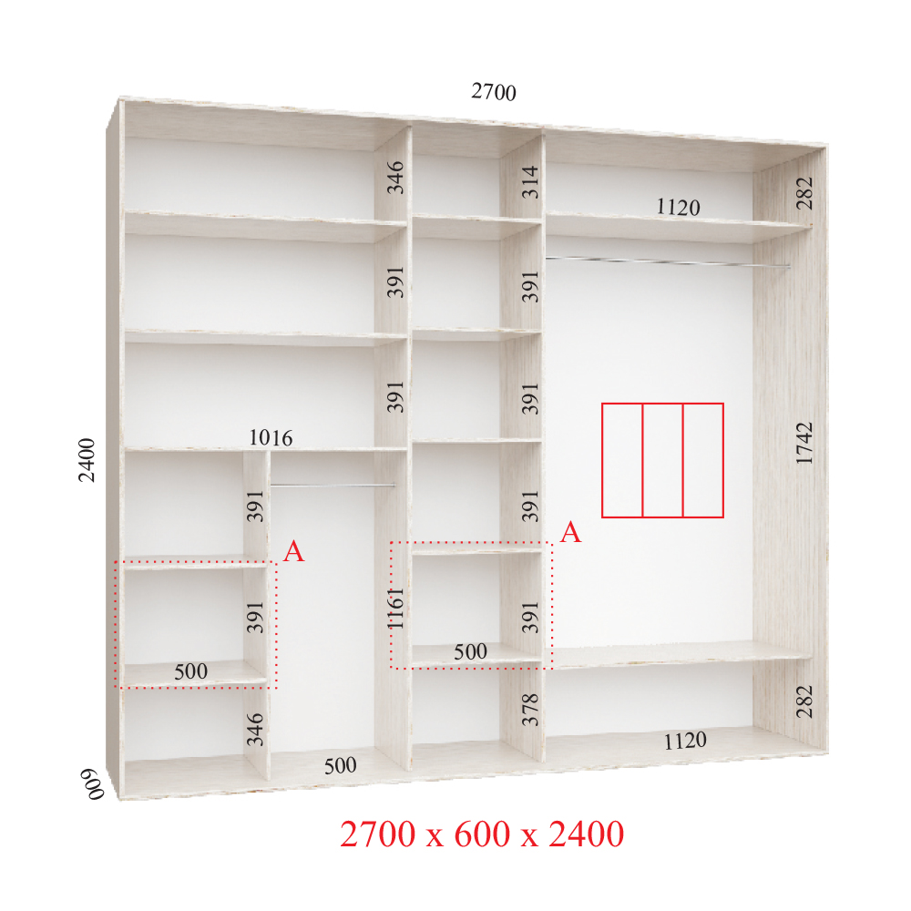Шафа-купе 270х60х240 Люкс 3 фасаду - інноваційне рішення для організації простору вашої кімнати. Ця шафа є ідеальним поєднанням функціональності, елегантності і практичності, яке перевершує всі очікування. На відміну від звичайних шаф, наш шафа-купе 270х60х240 Люкс 3 фасаду володіє унікальними перевагами, які роблять його неперевершеним вибором. Перше, на що варто звернути увагу - це його розміри.