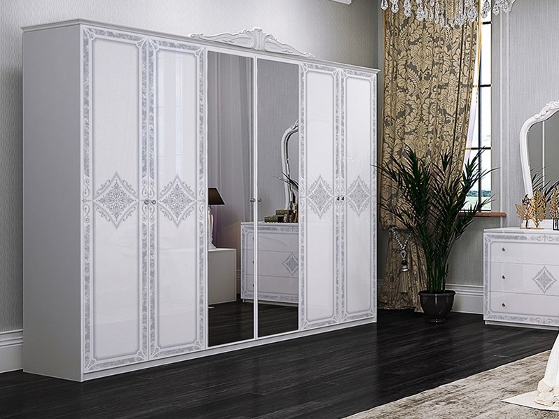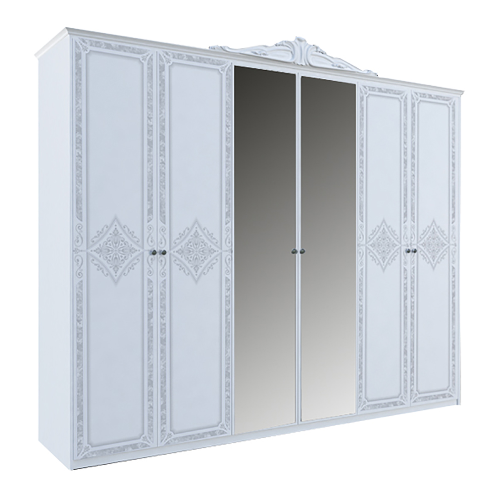 Шафа Луїза 6дв з дзеркалом MiroMark - являє собою стильний і функціональний меблевий виріб, виконаний з високоякісного матеріалу. Він доступний у білому глянцевому кольорі, що надає йому сучасний та елегантний вигляд.