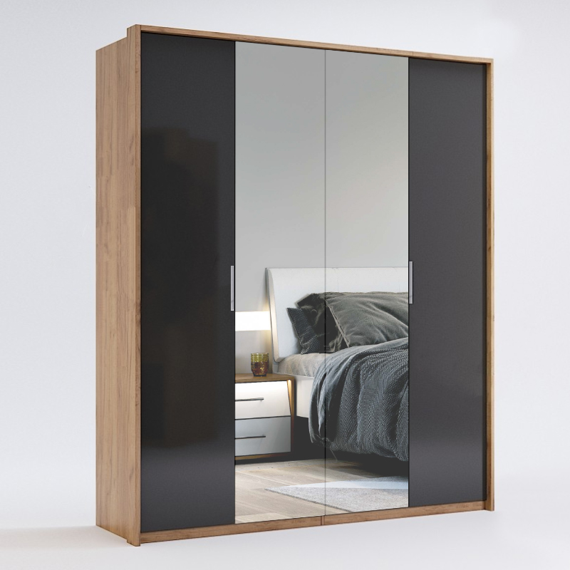 Шафа місяць 4дв MiroMark згорнутий виконаний в сучасному стилі і має чотири двері. Вона має висоту 2132 мм і глибину 582 мм.шафа оснащений дзеркалом, яке надає функціональності і допомагає створити візуальний ефект збільшення простору в кімнаті.