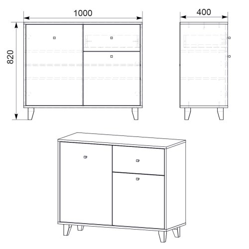 Ширина: 1000 мм. середня ширина комода робить його універсальним варіантом для різних кімнат, включаючи спальню, вітальню, кухню і коридор.