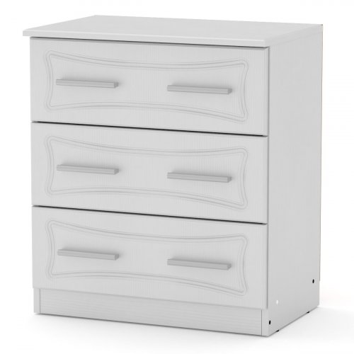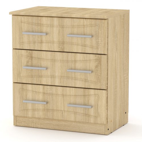 Цей невеликий комод-3А МДФ - ідеальний вибір для тих, хто шукає компактне і стильне рішення для зберігання речей в будинку. З висотою 690 мм він легко поміщається в невеликому приміщенні і дозволяє зберігати різні предмети в організованому порядку.