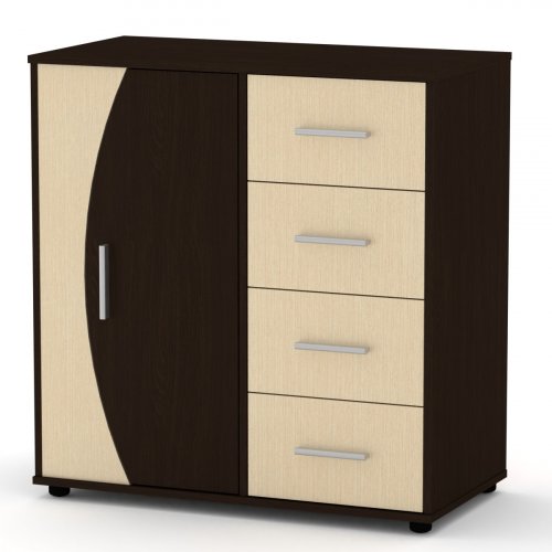 Цей комод доступний у різноманітних комбінованих кольорах ДСП, включаючи бук, вільху, горіх, яблуню, дуб соному та венге комбі. Ви можете вибрати комбінацію кольорів, яка найкраще відповідає вашому інтер'єру та виражає ваші особисті уподобання.