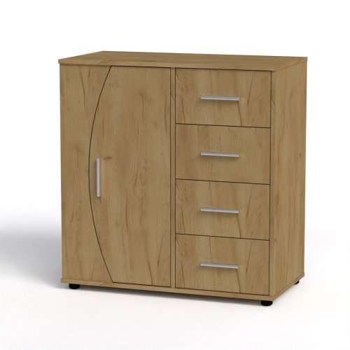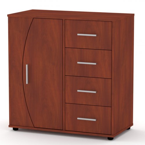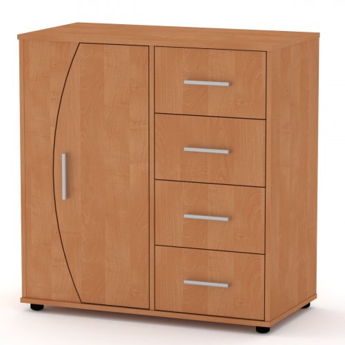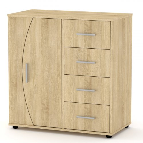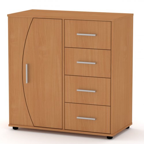 Комод-4-1-1 - ідеальний вибір для організації зберігання ваших речей і додавання стильного акценту до Вашого інтер'єру. З висотою 913 мм він надає вам достатньо місця для зберігання різних предметів і допомагає поліпшити організацію вашого простору. Ви можете розмістити його в будь-якому приміщенні, де потрібне додаткове місце для зберігання.