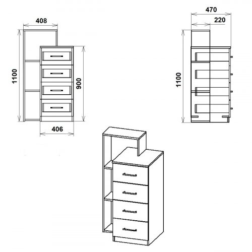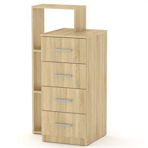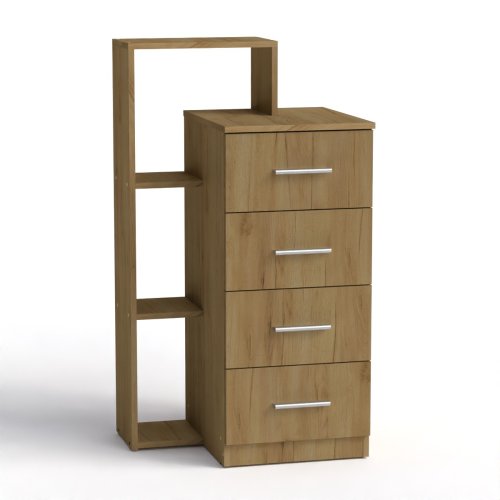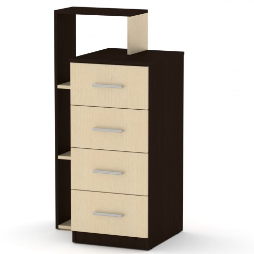 Комод-4 - 1л - це ефективний і стильний спосіб організувати простір вашого будинку, надаючи йому не тільки функціональність, але і естетичний шар. Наш комод, з висотою 1100 мм (або 900 мм без ніжок), є ідеальним вибором для впорядкованого зберігання вашого майна.