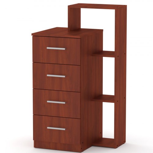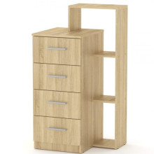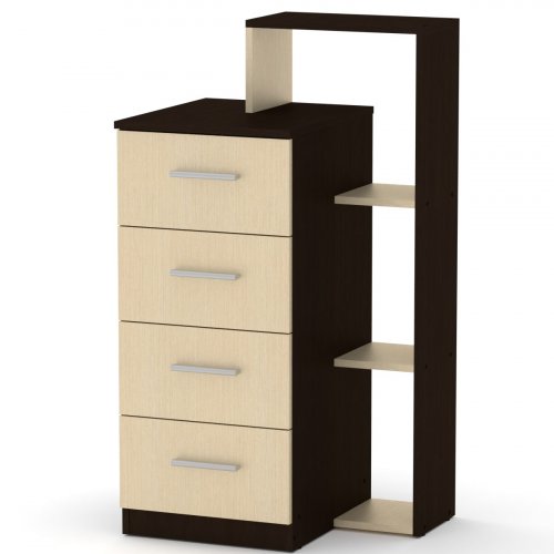 Цей комод виготовлений з високоякісного ламінованого ДСП, що робить його міцним і довговічним. Матеріал не вимагає складних умов догляду і легко витримує вологість і механічні пошкодження, що робить його ідеальним для щоденного використання.