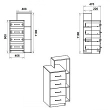 Цей комод-4 - 1п - ідеальне поєднання елегантного дизайну, функціональності і надійності. З висотою 1100 мм (або 900 мм без ніжок) він додасть вашому інтер'єру вишуканість і забезпечить вам багато місця для зберігання. Такий розмір ідеально підходить для спальні, вітальні або коридору, де ви можете організувати зручне зберігання різних предметів.