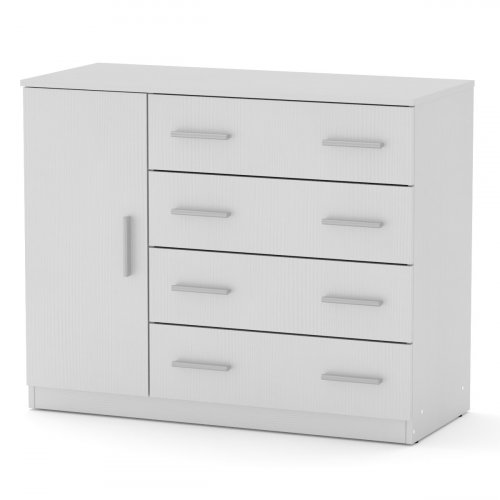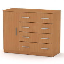 Матеріал виготовлення цього комода-ламіноване ДСП, яке відрізняється високою міцністю і тривалістю служби. Воно легке у догляді і має гладку і стійку поверхню, яка добре витримує подряпини і вологість.