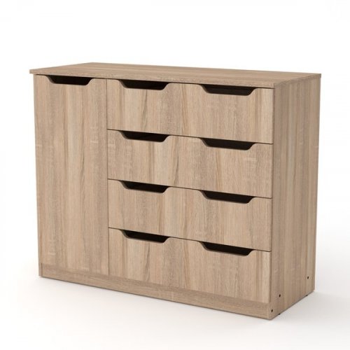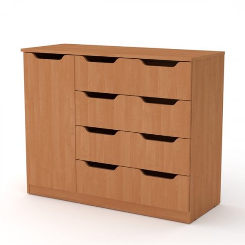 Цей комод доступний у різноманітних кольорах ДСП, включаючи бук, вільху, горіх, яблуню, дуб соному та венге. Це дозволяє підібрати колір, який відповідає вашому інтер'єру та виражає ваші особисті уподобання.