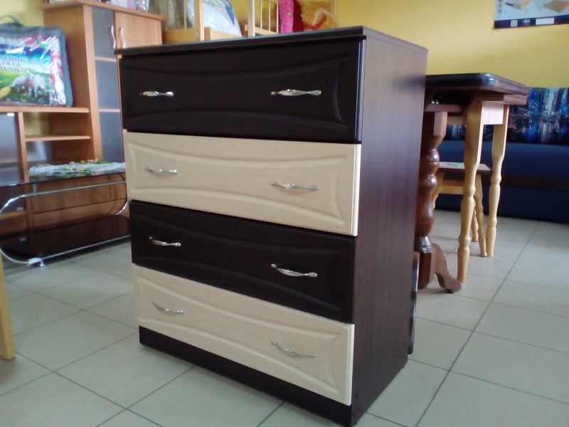 Цей комод доступний у різноманітних кольорах МДФ, включаючи бук, вільху, горіх, яблуню, дуб соному та венге. Це дозволяє вибрати колір, який найкраще відповідає вашому інтер'єру та виражає ваші особисті уподобання.