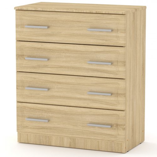 Матеріал виготовлення цього комода-МДФ, який відрізняється високою міцністю і тривалістю використання. МДФ виготовляється з деревного волокна, яке обробляється та ламінується, надаючи йому гладку та стійку поверхню. Цей матеріал довговічний і легкий у догляді.