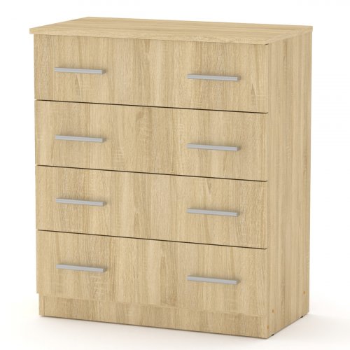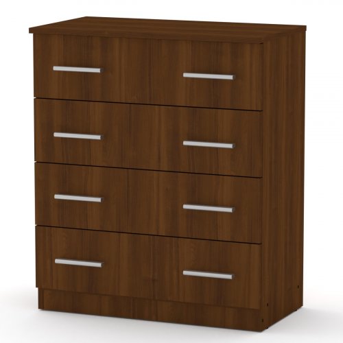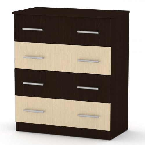 Комод доступний у різноманітних кольорах ДСП, включаючи бук, вільху, горіх, яблуню, дуб соному та венге. Ви можете вибрати колір, який найкраще відповідає вашому інтер'єру та вашим особистим уподобанням.