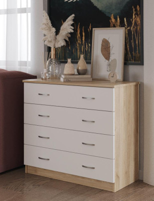 Цей стильний комод - 4Б - є ідеальним доповненням до Вашого інтер'єру для організації зберігання і створення акценту в приміщенні. З висотою 849 мм він надає достатньо місця для зберігання різних речей і підтримує порядок у вашому просторі. Його вишуканий дизайн і структурована поверхня роблять його справжнім об'єктом меблів-декору.
