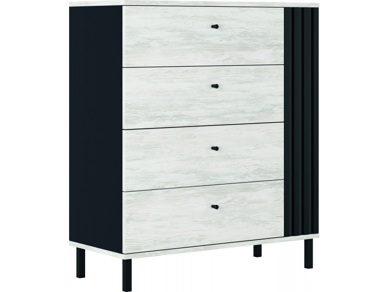 Комод оснащений чотирма висувними ящиками, які забезпечують зручний доступ до речей, що зберігаються, і дозволяють організувати простір в комоді з урахуванням ваших потреб і переваг. Велика кількість ящиків дозволяє ефективно розподілити речі за категоріями та підтримувати порядок у вашій кімнаті.