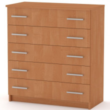 Цей комод доступний у різноманітних кольорах ДСП, включаючи бук, вільху, горіх, яблуню, дуб соному та венге. Ви можете вибрати колір, який найкраще відповідає вашому інтер'єру та виражає ваші особисті уподобання.