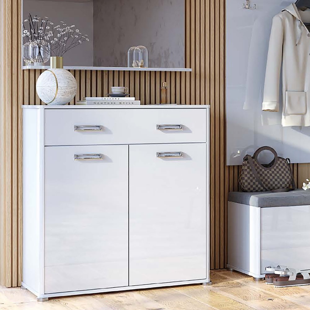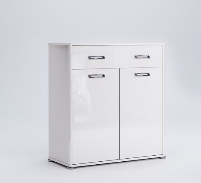 Комод має гарний білий глянсовий фасад, який приверне увагу і створить атмосферу шарму і розкоші у вашому житловому просторі. Корпус комод виготовлений з високоякісного ЛДСП товщиною 16 мм, що забезпечить йому довговічність і міцність.