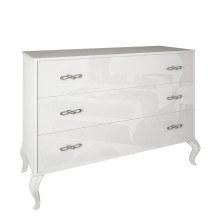 Комод має сучасний дизайн і вигляд, що надає йому елегантність і стиль. Він виконаний в білому глянсовому кольорі, що надає приміщенню світлість і простір. Виготовлений українськими майстрами, цей комод відповідає найвищим стандартам якості і є надійним предметом меблів.