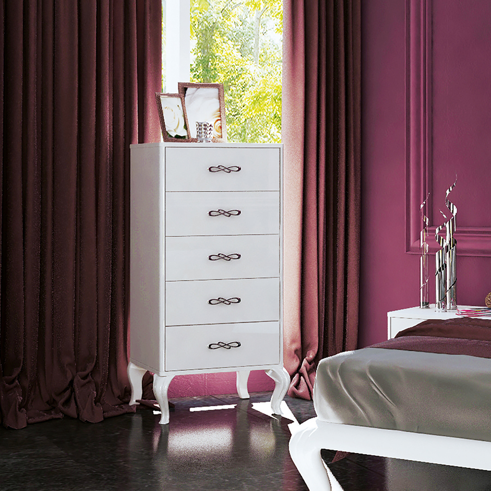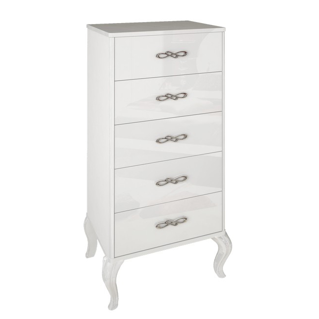 Комод має білий глянсовий колір, що надає йому сучасний і стильний вигляд. Це стильний вибір, який підійде до будь-якого інтер'єру.